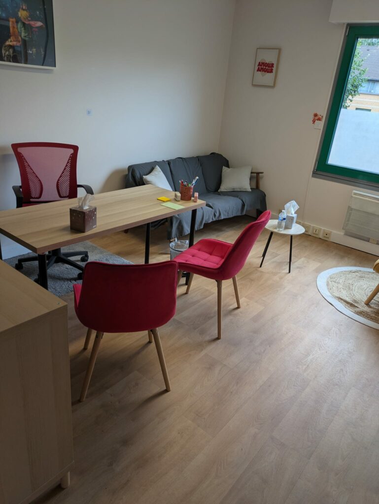L’espace de travail : Le cabinet est prêt à l’emploi et équipé de : Un bureau fonctionnel et 2 chaises. Une table de